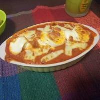 ゆで卵輪切りにしてモッツァレラチーズ大量に入れました!
