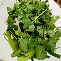 - 1 小松菜とニラを5cm幅に切ります。 パクチーは根を切り落とし、3cm幅に切ります。 ニンニクはみじん切りにします。