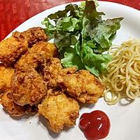 豆腐を『一晩凍らせる』と、しっかり水が切れ、水っぽく無らずに、美味しく揚げられます。外はカリカリ、中はフワフワで、チキンナゲットに近い味でした。もっと塩味が欲しい場合は、塩コショウがオススメかも。