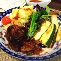 赤ワインで一晩漬け込んだ牛バラ肉で作りました。