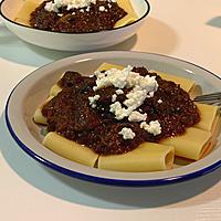 お肉は小さめにカットして、パッケリというパスタのソースにしました。トッピングにカッテージチーズを乗せてみました!