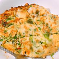 「豚肉と豆苗のチヂミ」の作り方を簡単で分かりやすいレシピ動画で紹介しています。