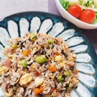 ベーコン・玉ねぎ・にんじん・枝豆を追加し、もち麦入りのご飯で作りました。