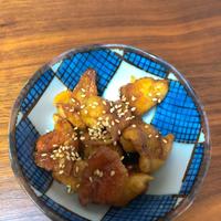 鶏皮の甘辛おつまみはいかがでしょうか。鶏皮をカリッと焼き、甘辛いタレで絡めました。シンプルですが、後引くおいしさの一品です。鶏皮が余ったときなどにもおすすめですよ。お酒が進むおつまみなので、ぜひお試しくださいね。