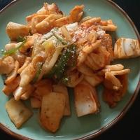 - 4 2を入れて全体に油が回り、はんぺんに火が通るまで中火で炒めます。