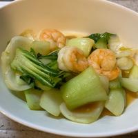 エビ追加。分量どおりだと味がぼやっとしていたので鶏ガラ粉末とオイスターソースを追加しました。香味野菜は多めに入れて簡単に美味しくできました。