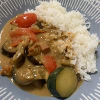 夫より「もうエスニックカレーの店に行かなくていい!」との声をいただきました。カレールゥを使うので簡単でおいしかったです。ココナッツクリームを使用したので、ミルクの2/3量にして水を増やして調整しました。