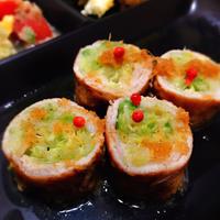 牛肉を豚ロースに、キャベツの間に安納芋も巻いてみました。ソースがサッパリしていてバター風味とマッチしてます!