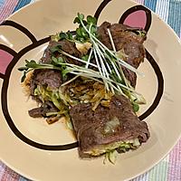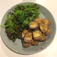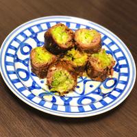 巻いた肉が焼いてる時に解けて、ただの炒め物になりました。