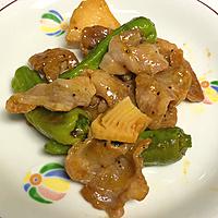 豚こま肉350g(切る手間を省く)、シシトウ1パック(60g)、下味は塩コショウ以外はレシピの倍量で、塩コショウは軽く振る程度にして直接フライパンでまぜた。調味料(A)はレシピの3分の2程度にした。これで味の濃さとしては丁度良い感じで小6の子供にも好評だった。