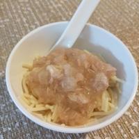 離乳食9〜11ヶ月ごろ(後期)から始められる、ツナと大根おろしのあんかけスパゲティのご紹介です。昆布だしにツナの旨味も加わり、とろっとしたあんかけにすることで、スパゲティに絡み、食べやすくなりますよ。ぜひ、お試し下さい。