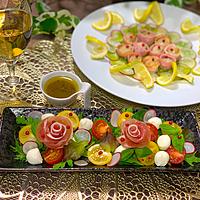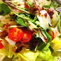 モッツァレラチーズ、生ハム、生バジル、ラディッシュを追加。ドレッシングは別添えで。白ワインビネガーとアンチョビのふたつが効いたオトナ味のドレッシングがすごく美味しい。ご馳走様でした。