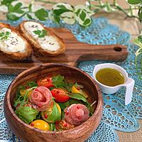 - 4 器にベビーリーフ、1を盛りつけ、3をかけて完成です。