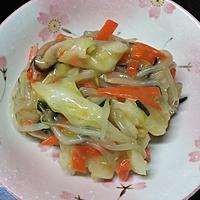 あっさり塩味でめっちゃ美味しかった!味付けが良い。もやしの代わりにキャベツを使いました。