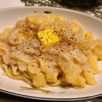 塩加減は、お好みで調整してください。 じゃがいもは皮をむいた状態で200gご使用ください。 今回は1.8mmで8分ゆでのパスタを使用しました。パスタの太さやメーカーによって加熱時間が異なりますので、パスタがやわらかくなるまで加熱し、水分がなくなった場合は必要に応じてお湯を加えて調整してください。