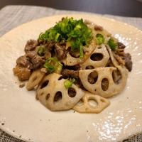 シャキシャキれんこんと甘辛牛肉のコンビ最高!特にコツとかなしで炒めて調味料絡めるだけなので超簡単です。