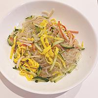 今回は簡単に作るために、錦糸卵を使用しましたが、卵1個で薄焼き卵を作り、細切りにしていただいてもお作りいただけますよ。春雨は長いようであれば茹でて、水気を切ったあと食べやすい大きさに切ってください。