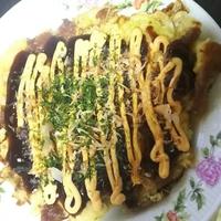 - 6 食べやすい大きさに切り、器に盛り付けてお好み焼きソース、マヨネーズ、かつお節、青のりをかけて出来上がりです。