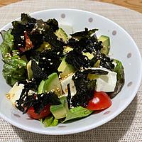 アボカド1個・カニカマなし・焼き海苔使用・レタスたっぷり。ドレッシングはポン酢&砂糖(甜菜糖)2倍、ごま油大1.5、白ごま大1、ごま油もう少し減らしてもよかったな。ドレッシング美味しい✏️