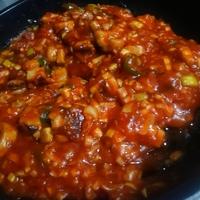 リコピン高の、濃厚なケチャップを使ったら、ケチャップ味が強くなってしまったので、調味料で微調整しました。