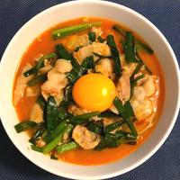 コチュジャンを豆板醤に、ニラをほうれん草に、卵黄を温玉に変更して家にあるもので代用しました(^_^)とっても美味しく出来て、夫が汁まで飲み干してしまいました!また作ります♡これおすすめレシピ!