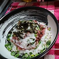 - 5 ごはんを盛り付けた器に、3、2、1、ネギトロの順にのせます。