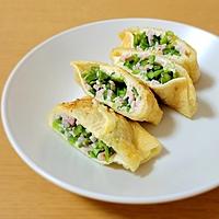 ピーマンとベーコンにチーズが合います。パン粉がサクサクして、油あげがふんわり。何もつけずに食べました。美味しかったです。