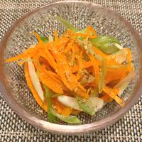 にんじんと長ねぎを使った簡単にできるサラダのレシピです。お家にある材料でできます。にんじんや長ねぎが中途半端に残ってしまった時におすすめですよ。ちょっとした前菜やおつまみにも最適です。是非、お試しください。