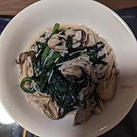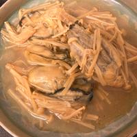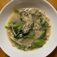 牡蠣の旨味がエノキにも染みていて春菊がアクセントになってる