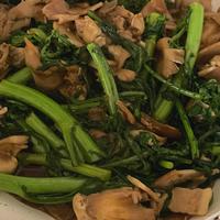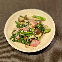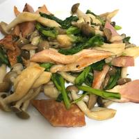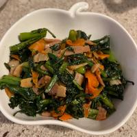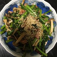 春菊としめじとベーコンのガーリック醤油炒め レシピ・作り方