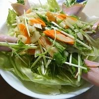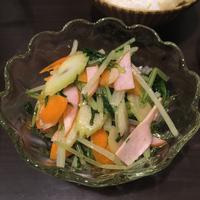 水菜を大量消費したかったので、一瞬茹でてカサを減らしました。味が物足りなかったので、スパイスをたくさん振ってハムを足しました。美味しかったです。