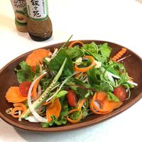 水菜、にんじん、セロリを、とても簡単なドレッシングを作って和えるだけのとても簡単な生野菜サラダのご紹介です。 野菜はお好みで他の野菜をプラスしても良いですね。 彩りも綺麗なので、食卓の一品にもとても良いですね。