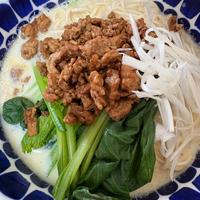 残りもので試したのでメモ。一人分、水300cc、みそ大さじ1/2、中華だし5振り、すりごま大さじ1、スキムミルク大さじ1。薄かったからこしょう少々、塩小さじ1/2。作りおき肉そぼろ使用なので、甜麺醤はスープの中へ小さじ1/2、ラー油5滴。辛くもなくまろやかな味。スキムミルクでも特に臭くも無し。もうちょい辛くても良かったかも。