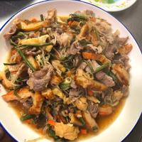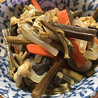 - 5 4にサラダ油を入れ、わらび、2、3を加えて炒めます。