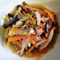 旬のわらびの食感を活かしながら、にんじんや油揚げ、干し椎茸、こんにゃくなどの具材と一緒に優しい味付けで煮込んだ一品です。具材それぞれに出汁がよく染み込み、山菜の香りと食感を存分に楽しめます。甘めの味付けで食べやすく、わらびが苦手な方でも美味しく召し上がれます。干し椎茸の戻し汁を使うとより深い味わいに。ヘルシーな常備菜としても重宝します。