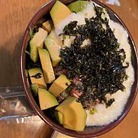 白ご飯に刻んだ大葉をのせてネギトロ、山芋、アボカド、山芋、韓国のりの刻んだものを乗せて食べました。とても美味しかったです。