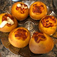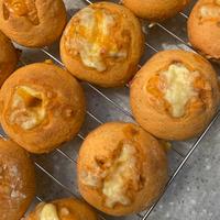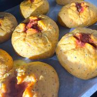 赤くてコロンとかわいい、手ごねで作るトマトパンです。 生地の中に溶けるチーズを忍ばせて、焼きたてをとろ〜っと食べるのが最高! 時間経っても、オーブンや電子レンジで軽く温めればおいしいです。 朝食やランチにおすすめです。