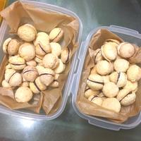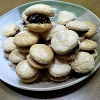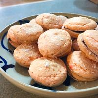 - 5 オーブンシートを敷いた天板に60個絞り、粉糖を2回に分けてかけます。170℃のオーブンで12分程焼き、焼きあがったら、粗熱をとります。