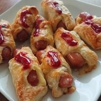 オーブン10分予熱の間に巻き巻き。10分焼いて出来上がりで簡単美味しい♪ウインナーが太かったので麺棒でパイシートを少し延ばして、チーズはピザ用チーズしかなかったので、それを敷いてウインナー乗せて巻き巻き。上に卵塗った後、ケチャップのせて焼きましたが、ちょっと焦げちゃいましたが、美味しかったです。