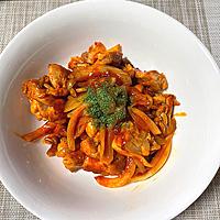 とても簡単でした^ ^しめじの変わりに舞茸を入れて、にんじんの千切りも少し加えました。砂糖は入れず、ケチャップとトマトソースとオイスターソースでも全然美味しかったです✨