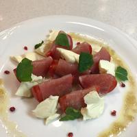 フレッシュでとっても甘いフルーツトマトを、たっぷり味わえるマリネです。生ハムの塩分が甘いフルーツトマトにマッチ!暑い日にぴったりな涼しげな一品で目でも味わえますよ。行程も難しくないので、是非チャレンジしてみて下さい。
