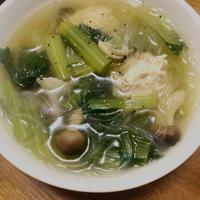 チンゲンサイなかったのでネギの青い部分をスープに入れました!