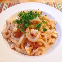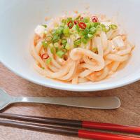 柚子こしょうを効かせた冷たいうどんのご紹介です。明太子の旨味と、まろやかでクリーミーなクリームチーズがうどんによく絡み、とてもおいしいですよ。和えるだけで簡単に作れるので、忙しいときにもぴったりです。
