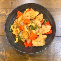 - 4 野菜に油がなじんだらカシューナッツ、(B)を入れて中火で炒め合せます。鶏もも肉に火が通り、全体に味がなじんだら火から下ろします。