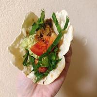 簡単タコミートのタコスです。タコミートは食パンにのせたり、タコライスにアレンジもできて便利ですよ。ホームパーティーなどにもおすすめのメニューです。ぜひ作ってみてくださいね。