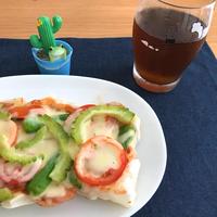 冷蔵庫に残っていたおもちと夏野菜をたっぷりのせて、
