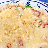 家にあるもので全部出来ました!8枚の四角餅を半分の薄さに切って26センチフライパンにビッシリ。3人でボリューミーなランチになりました(^○^)