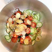 - 4 ボウルに(A)を入れて混ぜ合わせ、2、3を加えて和えます。