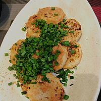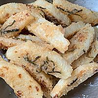 - 1 長芋は皮を剥き、1cm幅の輪切りにします。両面に薄力粉を振りかけておきます。
