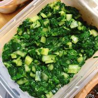 ナスがなくてきゅうりだけ。きゅうりのシャキシャキとモロヘイヤのネバネバ、白だしは優しい味付けでとっても美味しかったです!